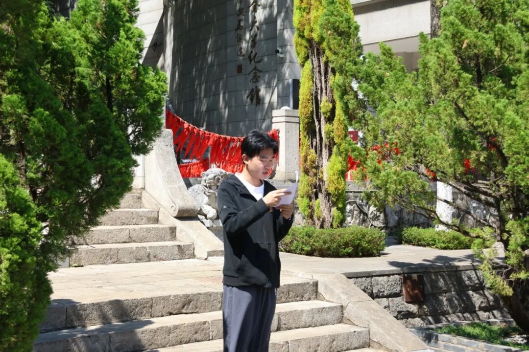 参观结束后,全体学员列队前往纪念广场,举行庄重的献花仪式。大家手持菊花,缓步走向纪念雕塑,以整齐的队形、肃穆的姿态,向革命先辈与联大先贤敬献鲜花。献花过程庄严肃穆,让学员们在仪式感中深化对历史的敬畏,厚植家国情怀。