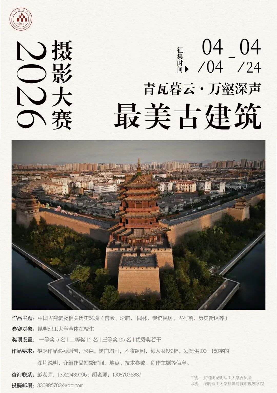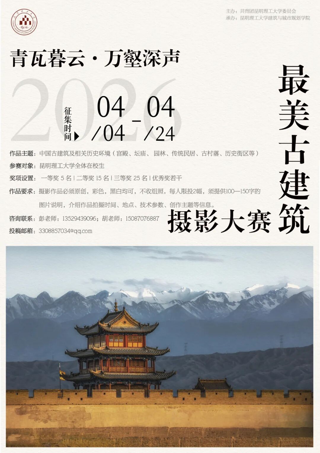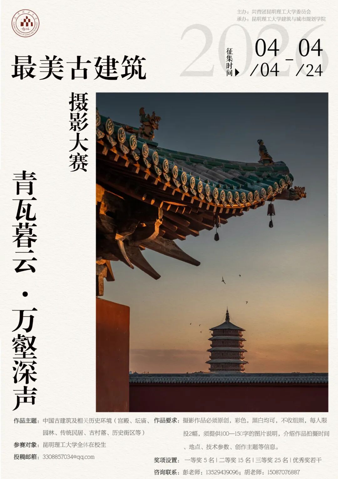 “青春六力·筑梦中国”校园文化主题活动之“六力筑梦·青瓦暮云”古建筑摄影作品大赛正式启幕,现将有关事宜通知如下。